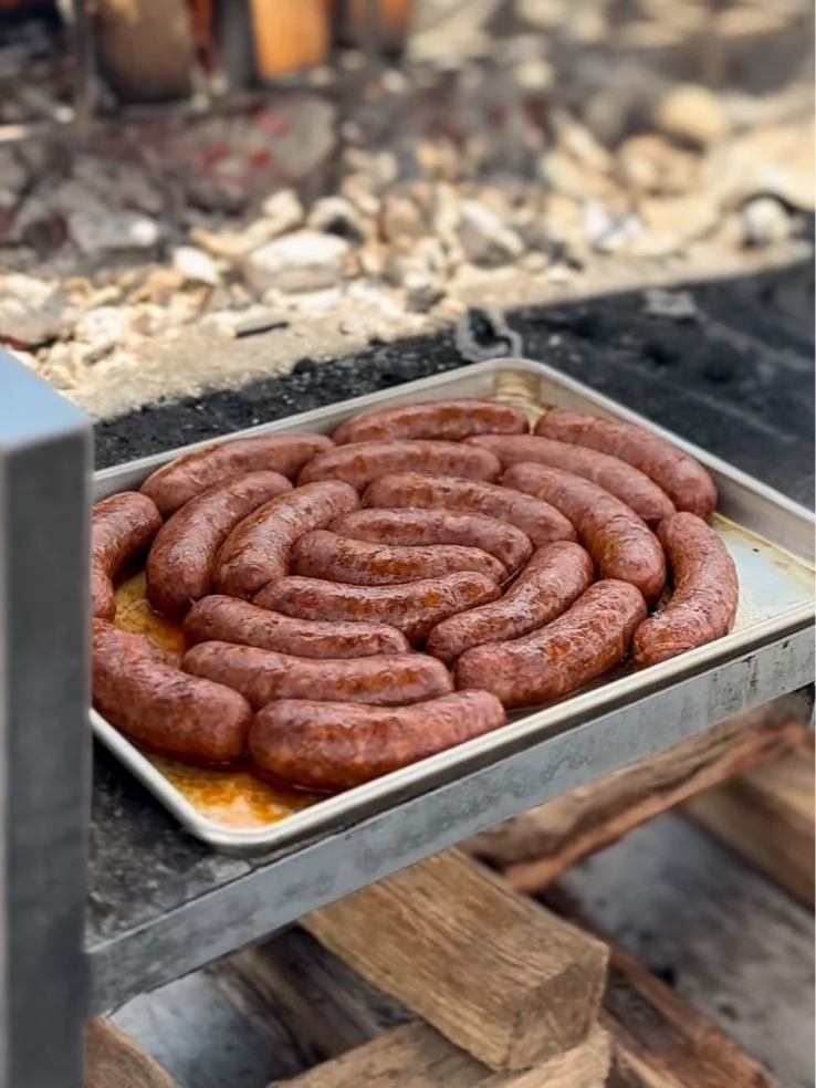 The wine brings subtle structure and depth, complementing the richness of the pork without overpowering it. Cooked over live fire, the chorizo develops a crisp exterior while remaining juicy and full of character.