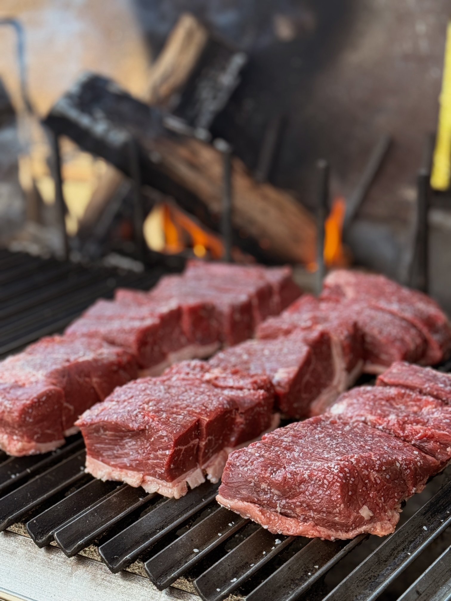 As it cooks over open flame, the fat slowly renders into tallow. That tallow is guided through our parrilla’s V-grates, where it is collected and reserved. We use it to baste the picanha as it finishes, returning depth and moisture to the meat.